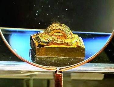 西汉南越王的“文帝行玺”,是我国目前考古发掘所见最大的一枚西汉金印,也是唯一的汉代龙钮帝玺。记者李韵摄/光明图片