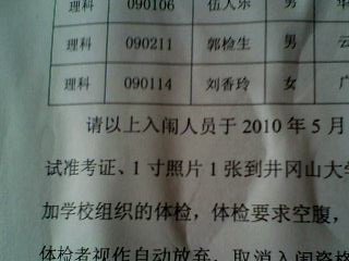 3.公告“井冈山大学2010年管理人员体检政审入闱人员名单”