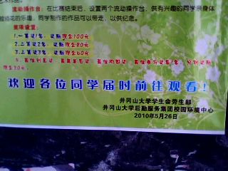 2.“井冈山大学第三届校园插花比赛开始了”落款日期“2010年5月26日”